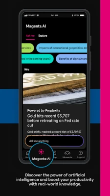 Pozdvihnite svoju produktivitu a informovanosť s Magenta AI, inovatívnou umelou inteligenciou integrovanou priamo do aplikácie. Využite nekonečné možnosti a získajte prístup k celosvetovým znalostiam v reálnom čase, kedykoľvek potrebujete. Okrem toho objavte náš rozsiahly digitálny obchod, kde nájdete exkluzívne balíčky, služby, najnovšie programy a neodolateľné ponuky pre vaše mobilné, pevné a televízne pripojenia. Neváhajte a zaobstarajte si COSMOTE TV a užívajte si obľúbené relácie a filmy kdekoľvek a kedykoľvek, bez akýchkoľvek záväzkov.