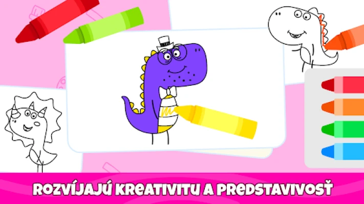 Naša aplikácia je ideálnym spoločníkom pre deti vo veku od 1 do 5 rokov, ktoré túžia objavovať a vyjadrovať sa prostredníctvom umenia. Ponúkame jednoduché a intuitívne rozhranie, ktoré umožňuje aj tým najmladším umelcom bezstarostne vyfarbovať a kresliť. Predstavte si, ako sa vaše dieťa ponára do sveta zvierat, objavuje fascinujúce dinosaury, spoznáva rôzne vozidlá, skúma život pod vodou alebo sa učí o rozmanitých druhoch hmyzu. Každá stránka je novou príležitosťou na zábavu a učenie, ktorá udrží pozornosť a záujem na dlhé hodiny.