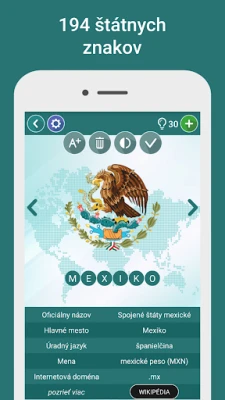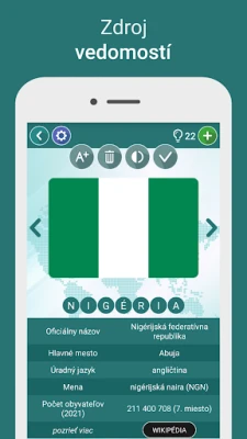 Pred Vami stojí 30 úrovní plných dobrodružstva, pričom každá z nich obsahuje 20 nápaditých hádaniek. Ak sa ocitnete v úzkych, náš inteligentný systém nápovedy je Vám plne k dispozícii: či už potrebujete odhaliť prvé písmeno, odstrániť nepotrebné, zobraziť polovicu názvu, alebo priamo vyriešiť otázku. Za každé štyri správne odpovede získate navyše jednu cennú indíciu! Sledujte svoj pokrok vďaka podrobným štatistikám, užívajte si intuitívnu klávesnicu a tešte sa na pravidelné aktualizácie. Vlajky Sveta prináša nekonečnú zábavu a vzdelanie, prekonávajúc akýkoľvek iný vedomostný kvíz. Prijmite výzvu a staňte sa majstrom svetovej geografie!