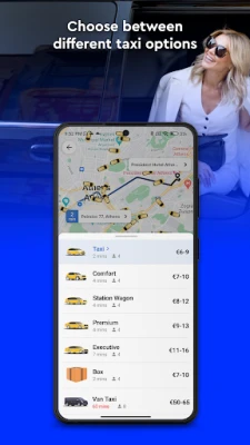 Objavte bezstarostnú cestu po Aténach a postupne aj v ďalších gréckych mestách s Taxi.gr. Táto inovatívna aplikácia zmení váš pohľad na mestskú dopravu. Jednoducho zadajte svoj cieľ a okamžite získate prehľad o predpokladanej cene a príchode najbližšieho vozidla. Vyberte si z pestrej ponuky kategórií – či už preferujete štandardnú variantu bez príplatku, pohodlie, priestrannosť kombi, eleganciu Premium, sofistikovanosť Executive alebo kapacitu Van, Taxi.gr má riešenie pre každú vašu potrebu.