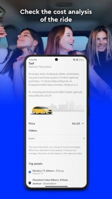 S Taxi.gr máte vždy plnú kontrolu nad svojou cestou. Sledujte príchod vášho vozidla v reálnom čase priamo na mape, čo vám poskytuje pokoj a istotu. Komunikujte s vodičom bezpečne prostredníctvom aplikácie, s garanciou ochrany vašich osobných údajov. Zvoľte si preferovaný spôsob platby – pohodlne kartou alebo Google Pay priamo v aplikácii, alebo v hotovosti. Pre uľahčenie budúcich ciest si môžete uložiť svoje obľúbené adresy. Potrebujete plánovať dopredu? Žiadny problém! Naplánujte si jazdu s viacerými zastávkami alebo si rezervujte vozidlo vopred, všetko s jednoduchosťou a flexibilitou, ktorú Taxi.gr ponúka.