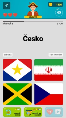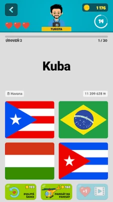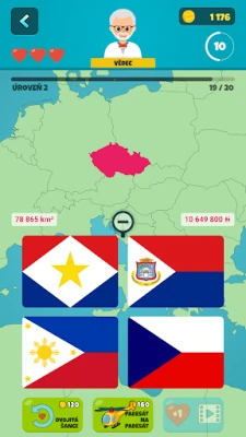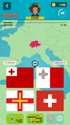 Svoje nazbierané zlaté mince môžete v hre strategicky využiť na nákup záchranných lán, unikátnych avatarov, rôznych tém a odomknutie špeciálnych výziev. Zvýšte svoje šance na výhru s pomôckou "50:50" alebo zdvojnásobením šancí na správnu odpoveď. Kľúčovou funkciou pre komplexné učenie geografie je interaktívna svetová mapa, ktorá vám umožní detailne študovať umiestnenie a tvary všetkých krajín sveta, a to aj mimo samotných kvízov. Pre cielené opakovanie sú pripravené funkčné kartičky, s ktorými si efektívne precvičíte všetky vlajky, názvy krajín, hlavné mestá, populácie, rozlohy a meny.